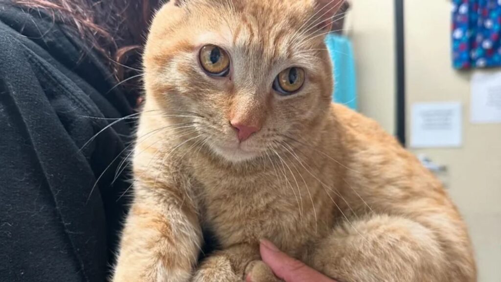 Goldie, a gentle tabby cat, had been surviving on the streets, often seeking shelter at a neighbor’s home to stay