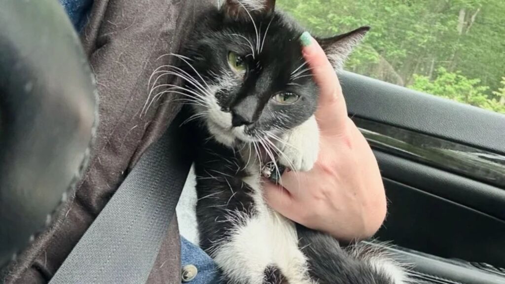 A kind-hearted teacher spotted a cat stranded on a busy expressway, searching for safety. Caitlin, who volunteers with Little Wanderers NYC, knew she had to help. As soon as she stopped, she guided the tuxedo cat into her car, where the cat immediately settled comfortably, as if she belonged there.
