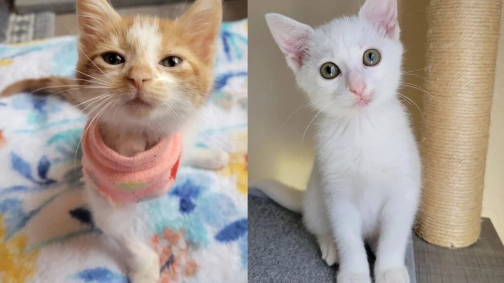 Just weeks earlier, another kitten named Peach had arrived at the shelter in desperate condition. The orange-and-white kitten had a severely injured leg and needed urgent care. Without hesitation, Nadija stepped in once again.